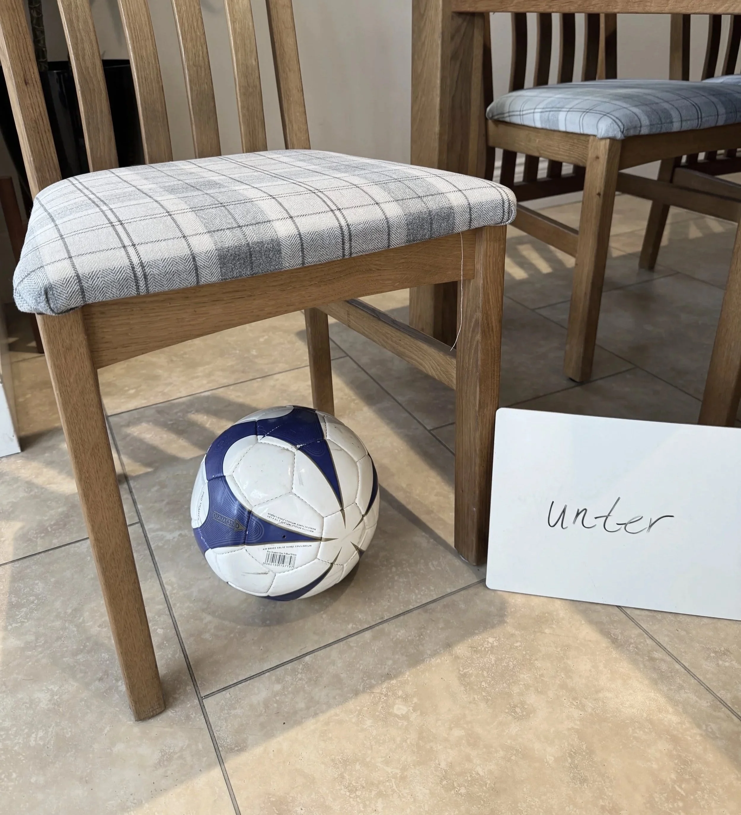 Instead, I plan my lessons so that we use the space and world around us. Prepositions - Why just write and repeat them? Let’s place real world items according to the preposition - Ein Ball ist unter/auf/neben dem Stuhl